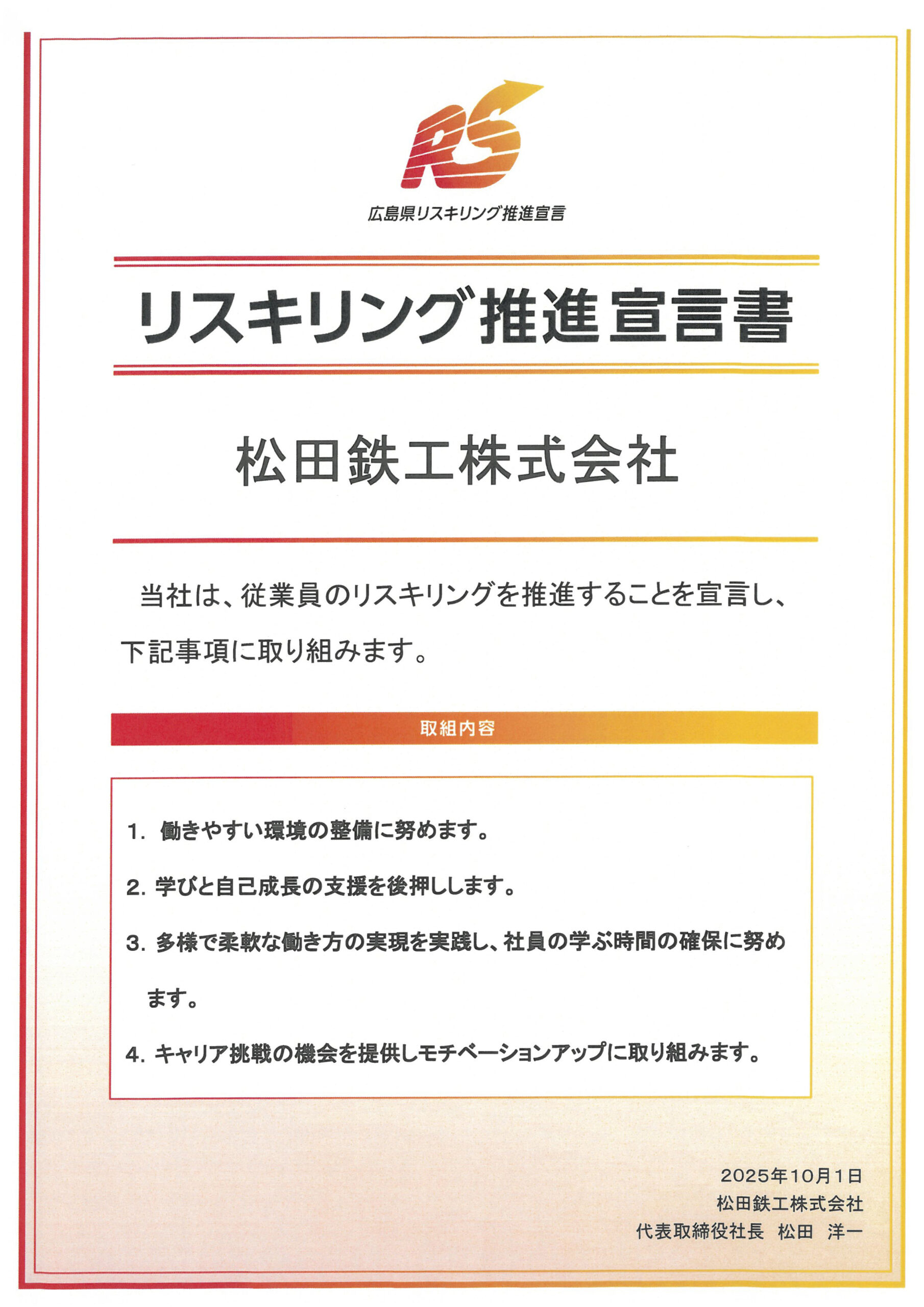 2025年(令和7年)4月 | 東広島市SDGsパートナー宣言証 |